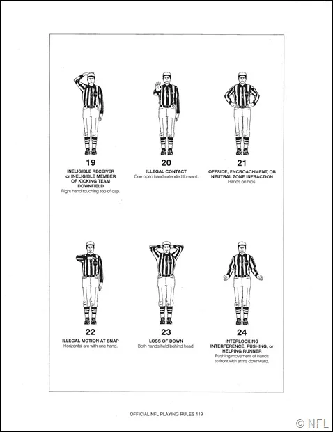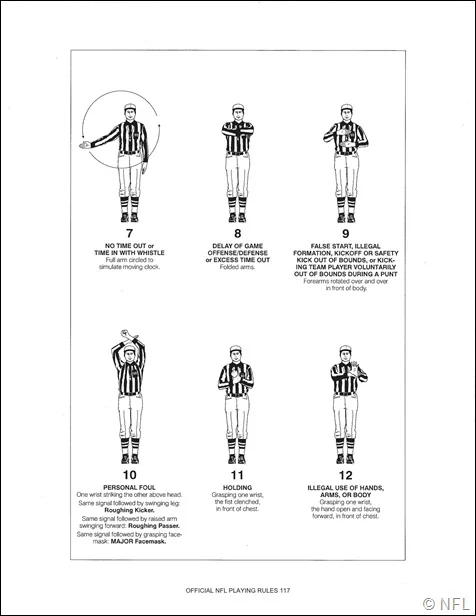 Which brings me to signals. Here are your visuals for the week. If you want this all in one document, head on over to the Officials signal page and get your signals on. This will help as we move on next week to talk more about penalties and some plays.